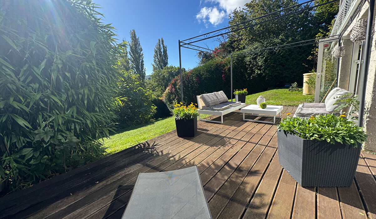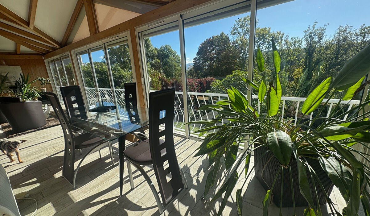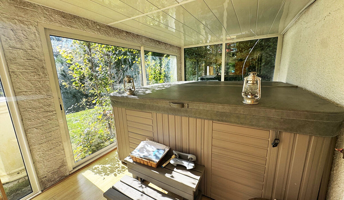 Au calme vue dégagé expo sud pour cette spacieuse et lumineuse maison de 145m2 implante sur terrain clos de 1151 m2- grande pièce vivre , 4 chambres - 2 cuisines -2 salles de bains - garage - jacuzzi - sauna