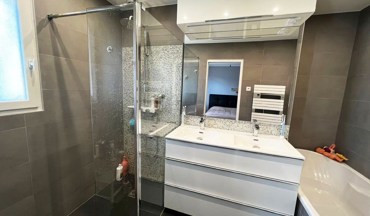 Au calme , située en retrait de la rue cette maison de 147 m2 bénéficie d'un environnement paisible. Son joli jardin agrémenté , d'une terrasse et d'une piscine avec vue montagne , constitue un atout indéniable. Piece a vivre de 40m2 avec cuisine ouverte , cheminée - 4 chambres dont une suite parentale - 1 bureau - 2 salle de bains - 1 garage - terrain clos de 827m2