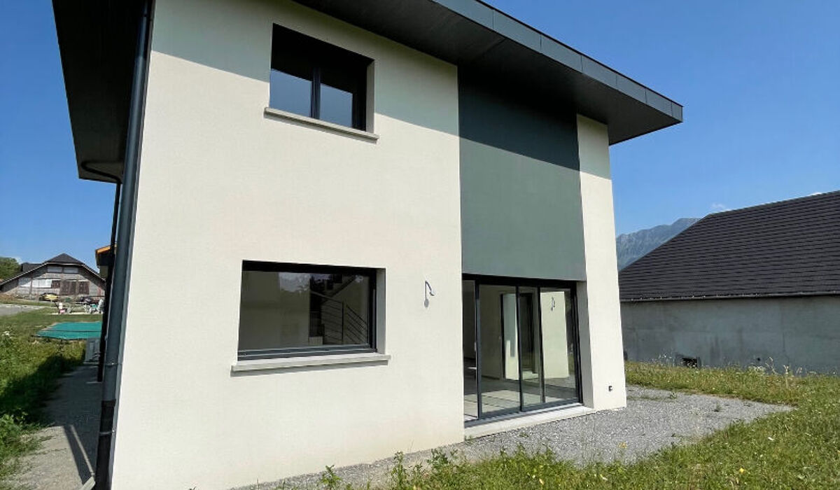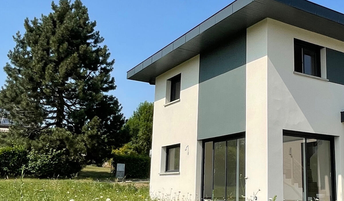 Lumineuse et spacieuse maison pour ce projet de construction - terrain plat 524 m2 - maison de 103 m2 avec grande pièce à vivre de 41 m2 - 4 chambres - garage - chauffage pompe a chaleur - 1 garage - maison BBC mitoyenne